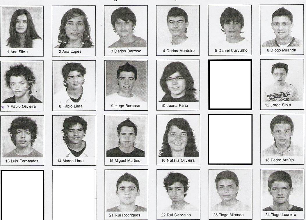 A turma é composta por 20 alunos, divididos em 16 elementos do sexo masculino e 4 do sexo feminino.